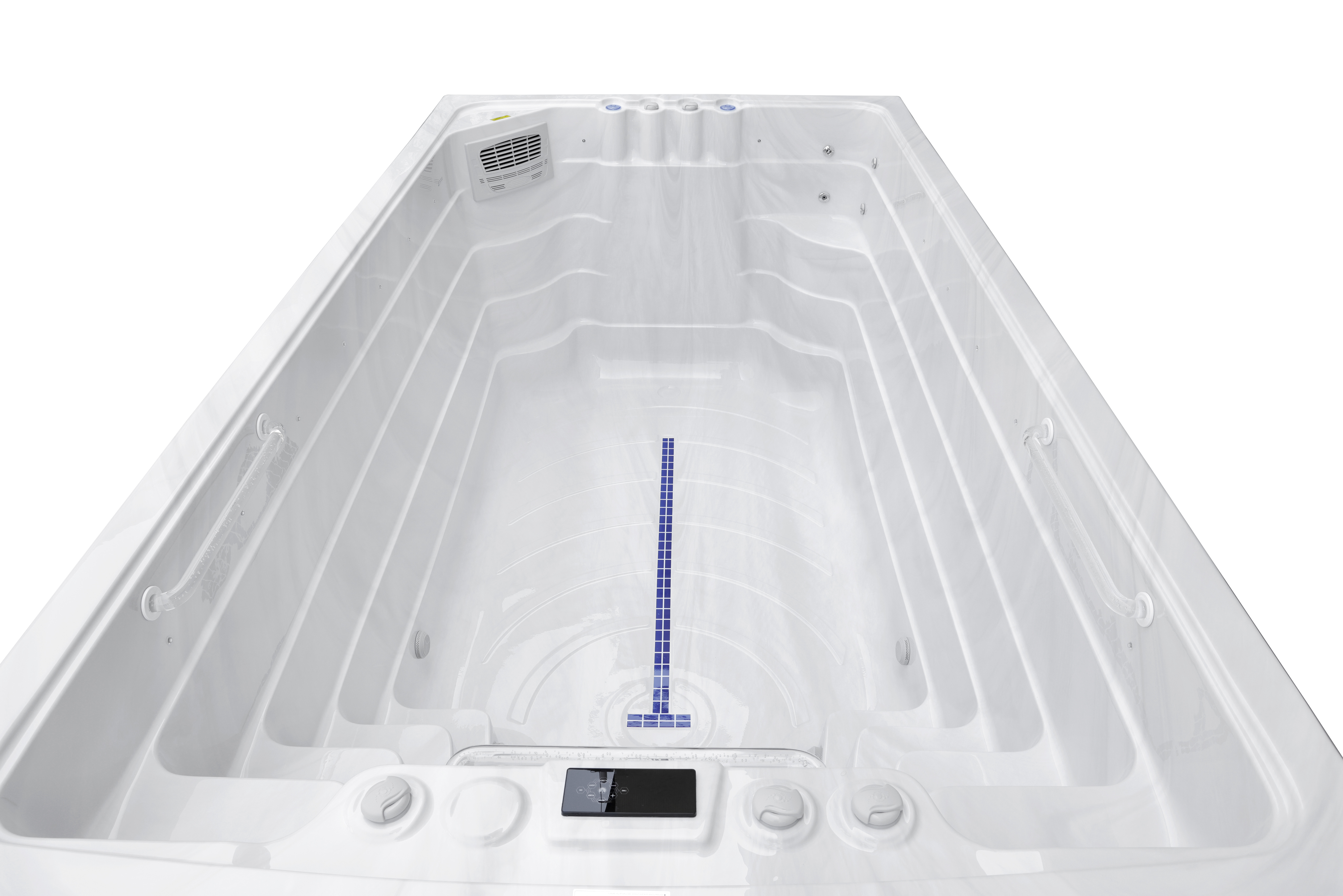 Три прозрачных поручня из пищевого пластика обеспечивают удобство и безопасность при перемещении между зонами и во время плавания.
